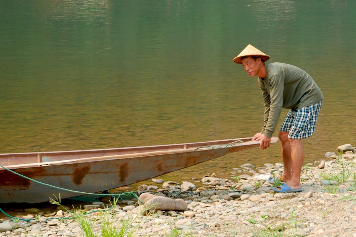 Weiter geht es durch Ban Phanom, ein Dorf, das schon zu Königszeiten für seine Webkunst berühmt war. Ein historischer Stopp führt uns zur Gedenkstätte von Henri Mouhot, dem Wiederentdecker von Angkor Wat, bevor wir tiefer in das Nam Khan Tal vordringen. Nach einem moderaten Anstieg werden Sie mit Ausblicken auf den Fluss und die berauschende Berglandschaft belohnt.